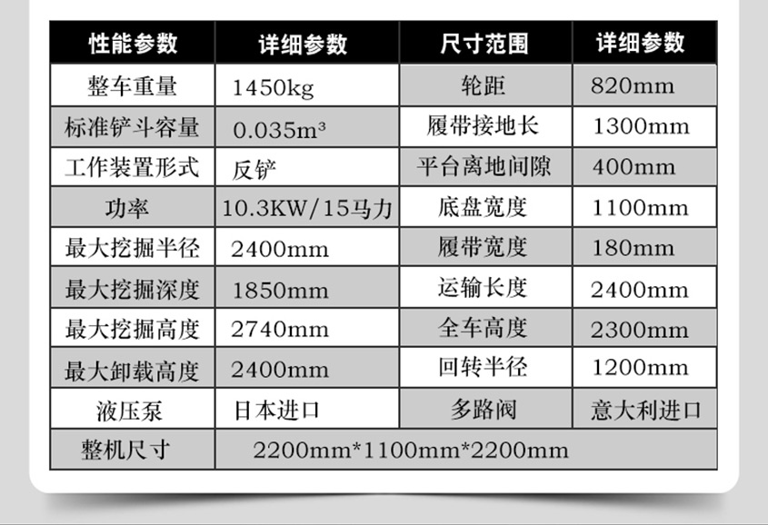 整機(jī)重量:1700kg履帶寬度:230mm發(fā)動(dòng)機(jī)功率:18.1kw